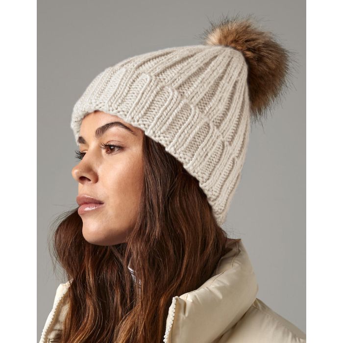 Beechfield Fur Pop Pom Chunky Beanie
