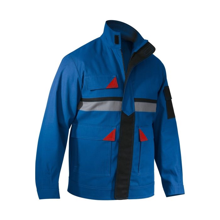 Dank der praktischen Taschenausstattung mit rechter Brusttasche, zwei Zwei-Wege-Taschen und linker Ärmeltasche bietet die Jacke genügend Stauraum für Ihre Arbeitsutensilien. Eine Innentasche ergänzt die sichere Aufbewahrung Ihrer persönlichen Gegenstände. Die durchdachte Reißverschlusskante mit Blende und der Stehkragen schützen effektiv vor Wind und Wetter.