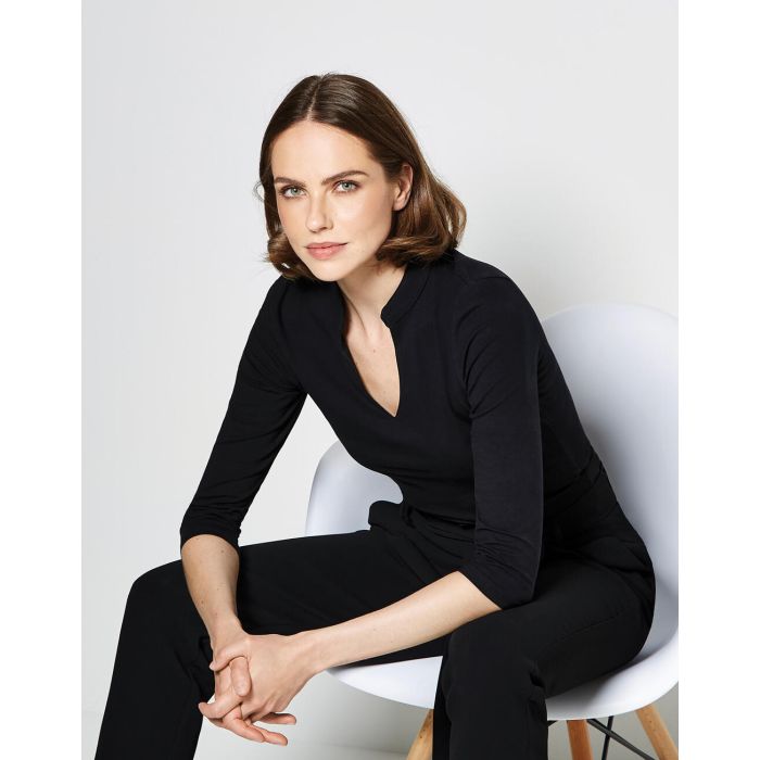 - V-Ausschnitt mit asiatischem Stehkragen