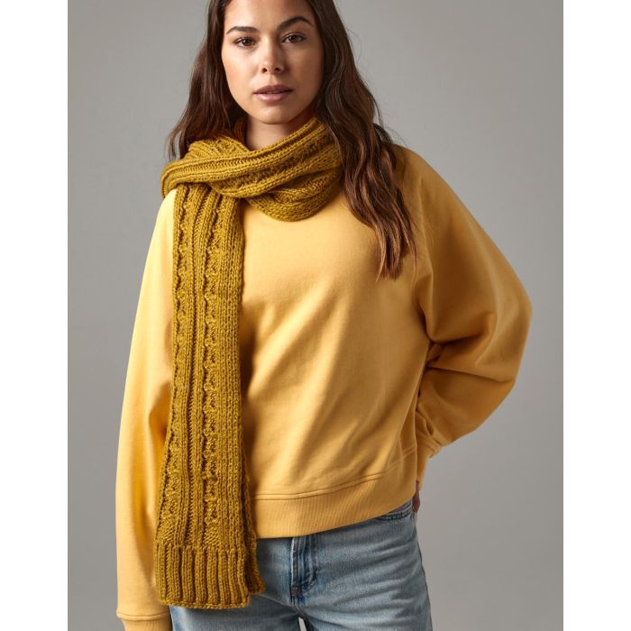Mit seiner handgestrickten Optik und dem exquisiten Griff entfaltet der Schal eine luxuriöse Ausstrahlung, die Exklusivität und Individualität vermittelt. Er spiegelt die Tradition und Präzision wider, für die Beechfield bekannt ist.