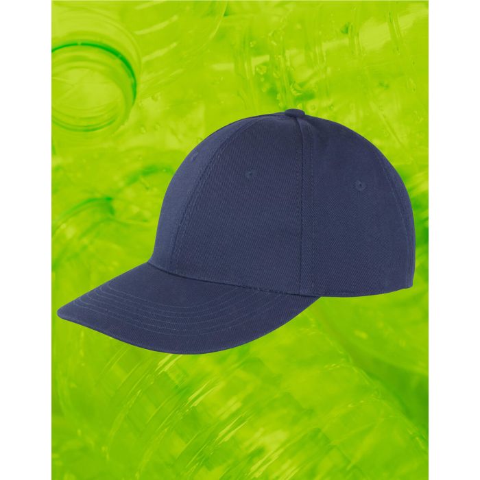Hergestellt aus hochwertigen, zu 100% recycelten Post-Consumer-PET-Plastikflaschen, bietet die Cap ein nachhaltiges Pendant zu herkömmlichen Stoffen. Die feine Twill-Struktur mit einem Gewicht von 210 g/m² verleiht der Kappe Robustheit und zugleich angenehmen Tragekomfort.