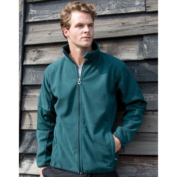Weitere clevere Details sind der linksherum eingenähte YKK Full Zip mit Kinnschutz und die seitlichen Taschen mit verdecktem Reißverschluss, die für Komfort und Sicherheit sorgen. Der bequeme Schnitt dieser Fleecejacke gewährleistet eine angenehme Passform, während das schnell trocknende Material bei Regen schnell wieder einsatzbereit ist.