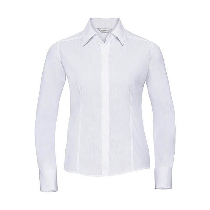 Russell Collection Ladies' LS Fitted Poplin Shirt - White - 3XL (Retoure-Ware)