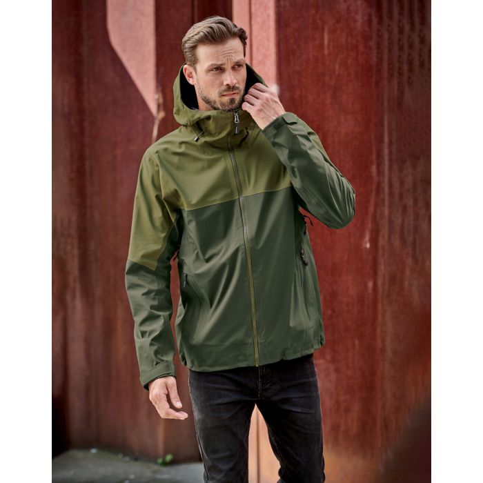 \nExtremer Wetterschutz mit vollflächiger Sturmkapuze und wasserdichtem YKK® AquaGuard®-Reißverschluss. Die Vertex Stormshell verfügt über die wasserdichte/atmungsaktive 3-Lagen-H2XTREME®-Technologie und eine fortschrittliche, ergonomische Passform mit mechanischem Gewebe, die uneingeschränkte Bewegungsfreiheit ermöglicht. Unterarmreißverschlüsse helfen bei der Regulierung Ihrer Körpertemperatur und eine verstellbare, bewegliche Kapuze mit verschweißter Krempe sorgt für eine bequeme Passform und hält Wasser von Ihrem Gesicht fern. Die Vertex Stormshell besteht aus normalem und recyceltem Polyestergewebe für einen geringeren ökologischen Fußabdruck.