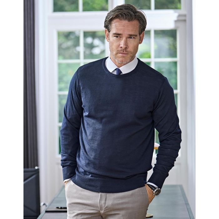 Entdecken Sie den exklusiven Tee Jays Herren Rundhals Pullover, ein Paradebeispiel für hochwertige Berufskleidung, die stilvolles Design mit Funktionalität verbindet. Dieser Pullover ist aus einer Mischung von 50% italienischer Merinowolle und 50% Polyacryl gefertigt, was ihn sowohl weich als auch langlebig macht. Das feine Strickmuster verleiht dem Pullover eine elegante Optik, ideal für den Einsatz als Businessbekleidung.